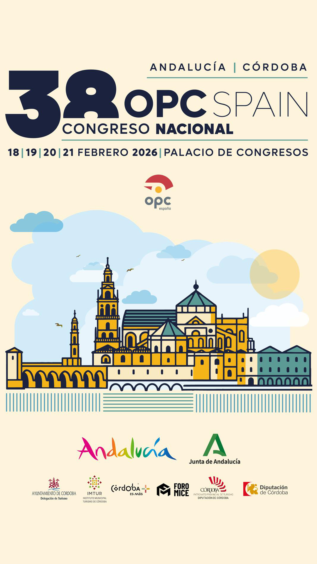 La Consejería de Turismo y Andalucía Exterior de la Junta de Andalucía, a través de la Empresa Pública para la Gestión del Turismo y el Deporte de Andalucía tiene previsto participar como patrocinador principal del destino anfitrión en el evento profesional especializado en turismo MICE denominado 38 Congreso Nacional de OPC Spain 2026, que se celebrará en Córdoba del 18 al 21 de febrero de 2026.