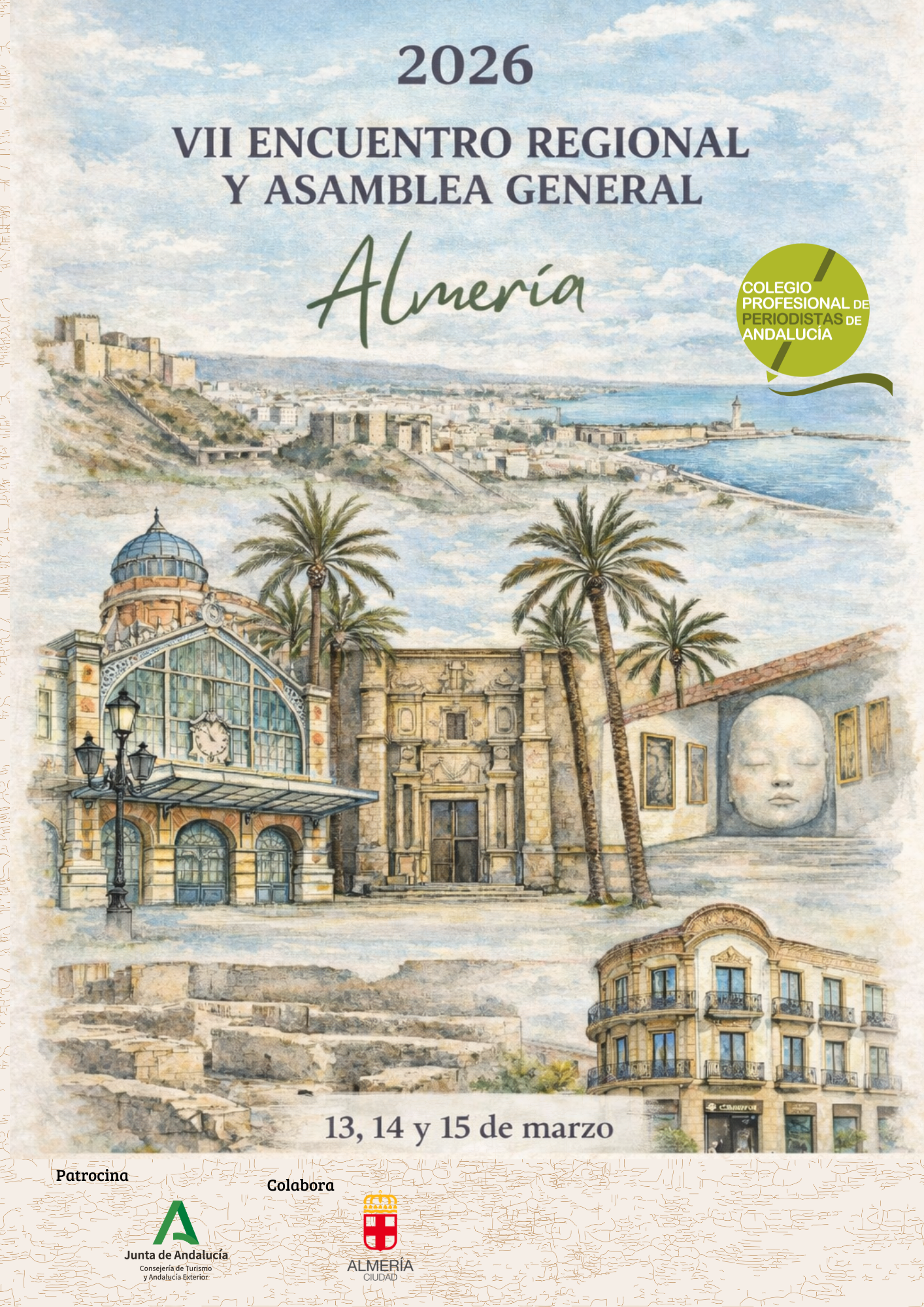 Almería capital acogerá por primera vez el Encuentro Regional de Periodistas de Andalucía, que se celebrará entre los días 13 y 15 de marzo de 2026, organizado por el Colegio Profesional de Periodistas de Andalucía (CPPA), con un amplio y variado programa de actividades de carácter institucional, cultural y turístico.