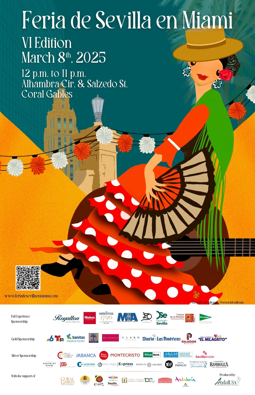 "El sábado 8 de marzo de 2025, prepárese para experimentar la vibrante cultura de Andalucía mientras la Feria de Sevilla en Miami transforma Alhambra Circle en una deslumbrante fiesta española. Organizada por Club eXpats y Planners On Point, bajo el paraguas de AndalUSA, esta celebración de un día lleva la magia de Sevilla al corazón de Coral Gables", indicaron los organizadores del evento en un comunicado.