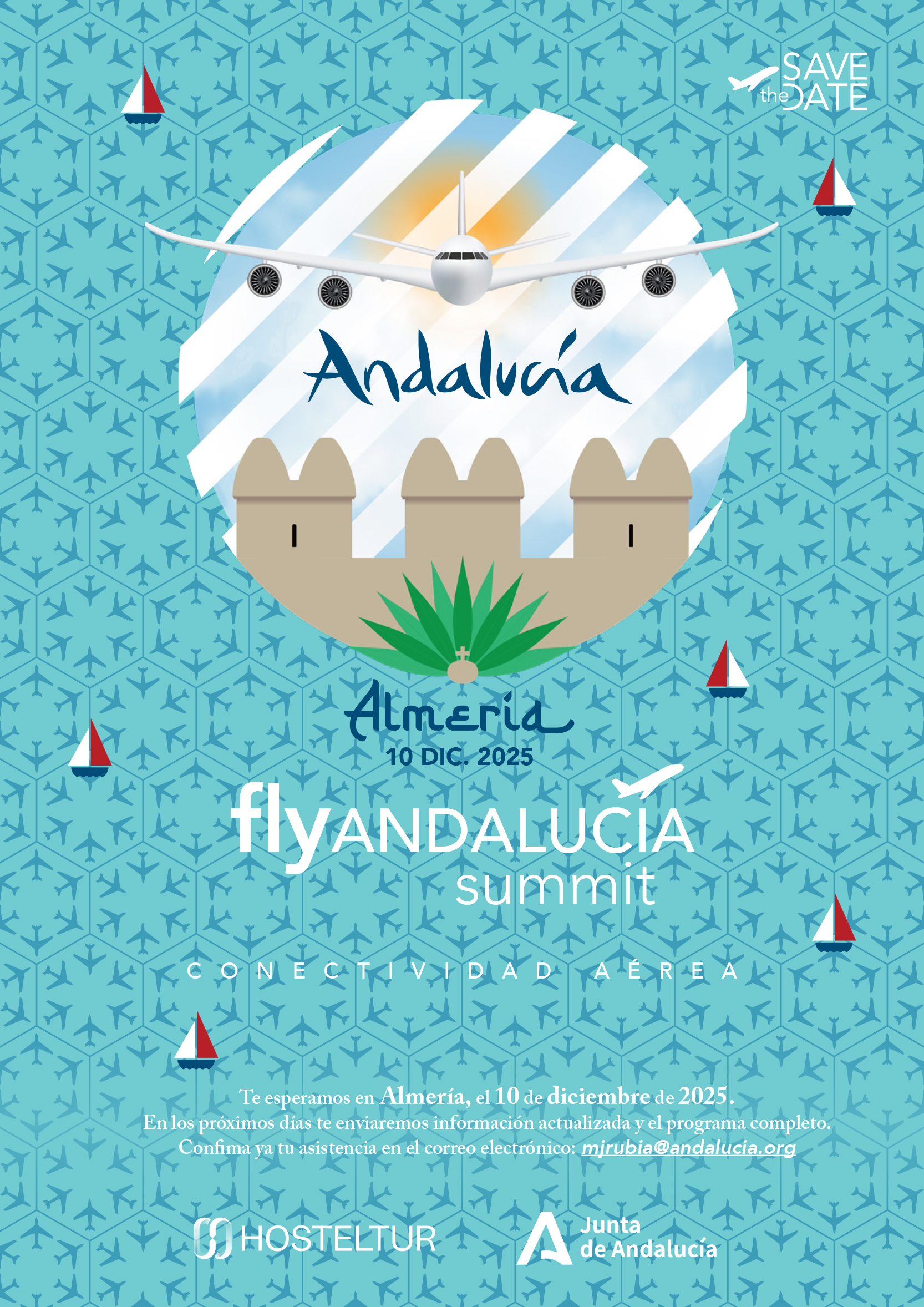 Auspiciado por la Consejería de Turismo y Andalucía Exterior y la colaboración de Hosteltur, el Foro Fly Andalucía Summit pretende ser un encuentro de debate para la reactivación de la conectividad aérea, mostrando una Andalucía conectada con Europa y el mundo, con infraestructuras aeroportuarias de primer nivel, posicionando y reordenando el destino para conseguir que Andalucía y sus aeropuertos sean el gran hub del sur de Europa.