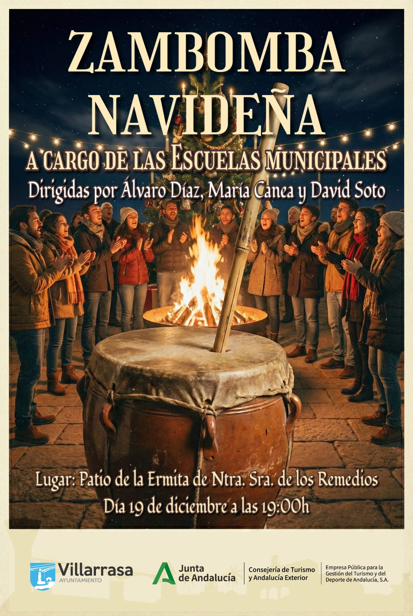 Con motivo de la celebración de las Fiestas Navideñas, el ayuntamiento, apostando por la cultura, el turismo y el fomento de las tradiciones populares, organiza el 19 de diciembre, una zambomba flamenca en el patio de la Ermita Nuestra Señora de los Remedios Coronada, en la que participarán los alumnos de las escuelas municipales según el siguiente detalle: